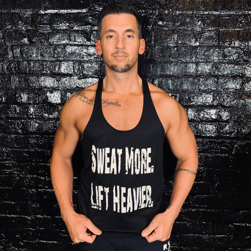 The main concept behind our patented, high intensity training aid, the Ultimate Lifting Sweatshirt is to "Sweat More. Lift Heavier" so it is only fitting that we created a super soft cotton, perfectly cut Men's Stringer that promotes just that! Every time you look in the mirror wearing our stringer, you will be reminded and motivated to sweat just a little more and to lift just a little heavier.