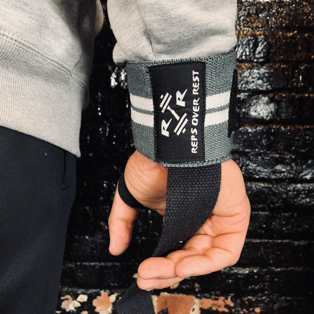 The 16” high quality cotton, elastic, and polyester wrist wraps are attached at wrist cuffs and can be adjusted based upon support needed. There are heavy duty cotton lifting straps attached that can be put in place holders up sleeves when not in use.